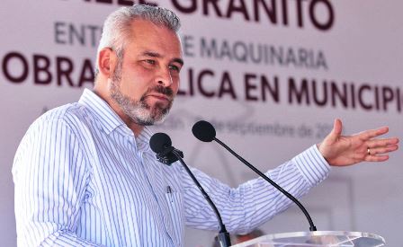 Acuitzio del Canje, Mich.- El gobernador Alfredo Ramírez Bedolla inauguró obras y entregó maquinaria al municipio de Acuitzio, a fin de impulsar las actividades productivas y mejorar la calidad de vida de sus 20 mil habitantes.