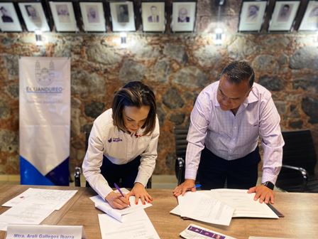 La directora general del Sí Financia, Areli Gallegos Ibarra, refirió que el acuerdo estipula una aportación que permitirá darle dinamismo al desarrollo del municipio ubicado en el Bajío de Michoacán, y destacó la importancia del programa Fuerza Mujer, el cual genera créditos desde los 3 mil hasta los 5 millones de pesos para las empresarias.