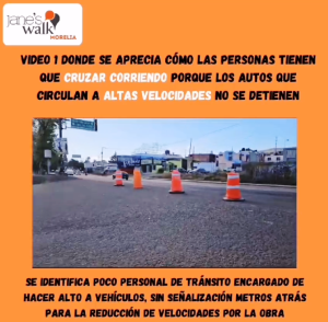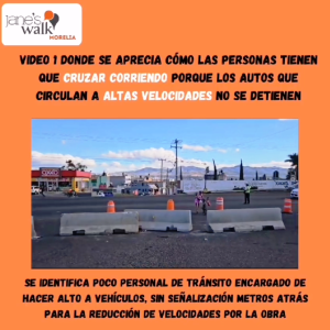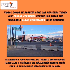 A causa del retiro del cruce peatonal y semáforo ubicado en Periférico Paseo de la República, la organización Jane´S Walk Morelia exige al Gobierno del Estado implementar alternativas seguras y urgentes de movilidad, ya que en la zona se registran altas velocidades de vehículos de carga pesada y es paso obligado para vecinos y estudiantes de las colonias cercanas, por lo que instan al gobierno del estado a invertir e implementar una campaña seria y efectiva de educación vial, ya cuenta con una Ley de Movilidad que le faculta.
