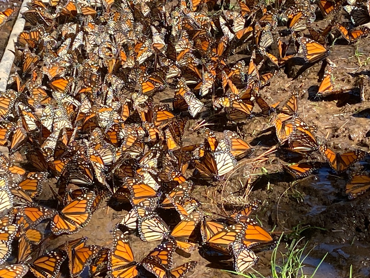 En estos días, debido al cambio de clima, el rayo del sol ayuda a que las mariposas salgan del letargo para bajar a los riachuelos o cuerpos de agua, donde se pueden observar por cientos. De igual forma revolotean cerca de los senderos que recorren los visitantes, y no permanecen perchadas en los arboles de oyamel como cuando comienza la temporada.