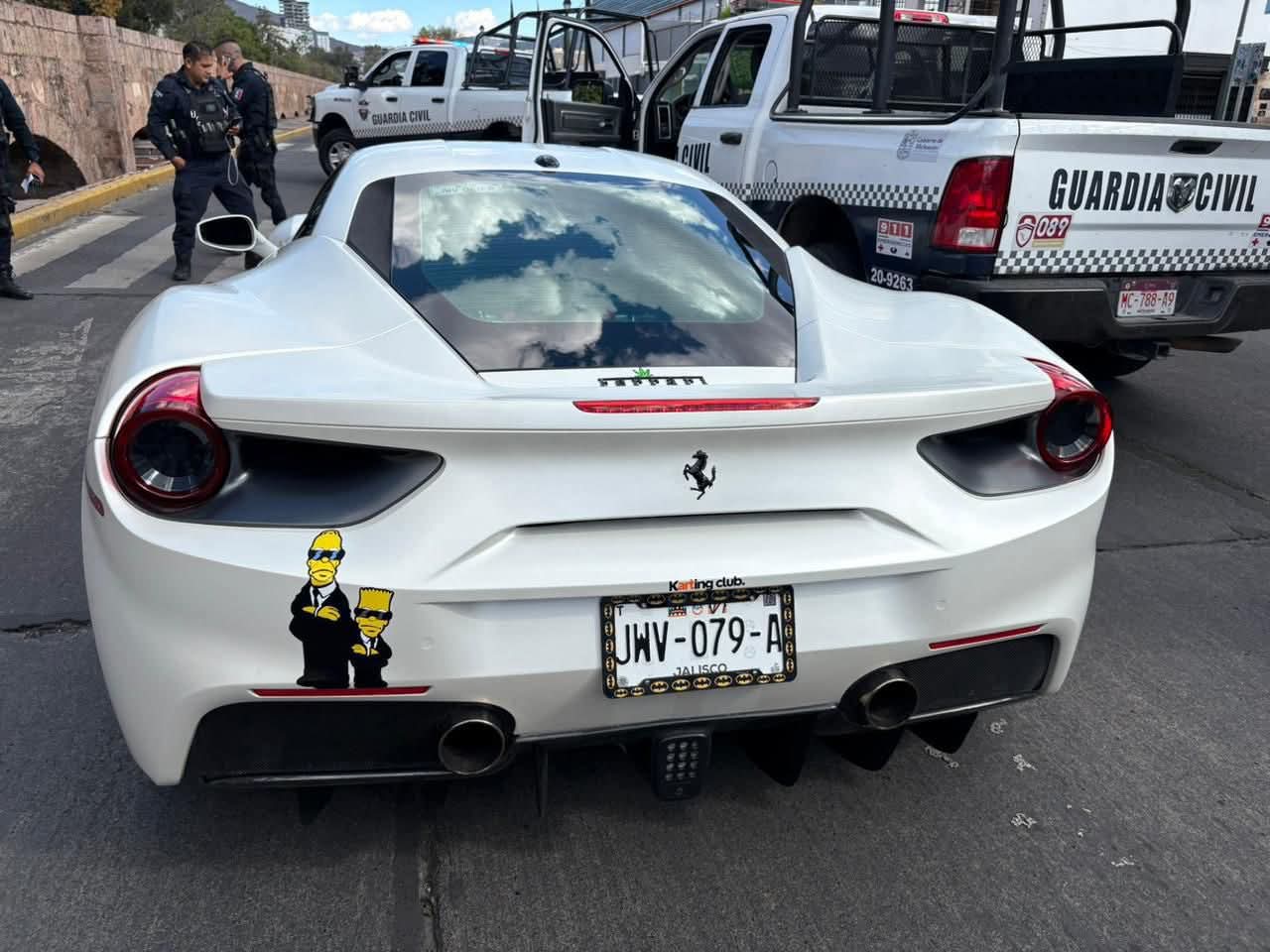 El pasado domingo fue asegurado un Ferrari 488 GTB que circulaba a exceso de velocidad en la avenida Acueducto, donde durante la revisión se les encontró un arma de fuego calibre 9 mm, motivo por el cual fue detenida la pareja que circulaba al interior.