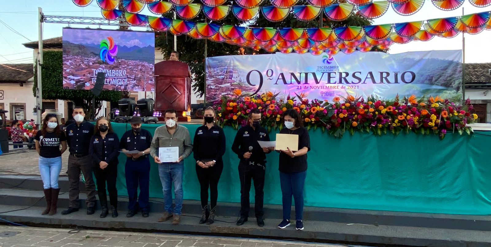 Tacámbaro, Michoacán.- Tacámbaro se vistió de fiesta para conmemorar el Noveno Aniversario de su inclusión en la lista de los Pueblos Mágicos de México: un grupo que a la fecha reúne 132 destinos de todo el país, en los que se encuentra la esencia representativa de nuestro país.