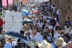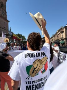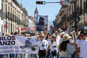 Los gritos se dejaron escuchar a lo largo de la Avenida Acueducto desde el jardín Morelos y por la avenida Madero hasta Palacio de Gobierno en contra del «narco estado» y todas las condenas del pueblo mexicano que habita en Morelia, hartos de los gobiernos de Morena cuyo saldo es de corrupción, injusticia y muerte, que no resuelven, que no dan justicia ni dan paz. En reclamo de un país donde impere la paz, donde haya un gobierno que brinde seguridad a sus gobernados y no los acribille.