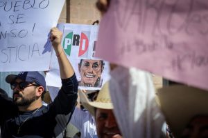 «Carlos no murió el gobierno lo mató», resonaba en el aire justo a las 12:00 horas en punto de esta tarde cuando las campanadas de Catedral sonaban, mientras la Policía estatal estaba replegada en el callejón al costado del inmueble gubernamental.