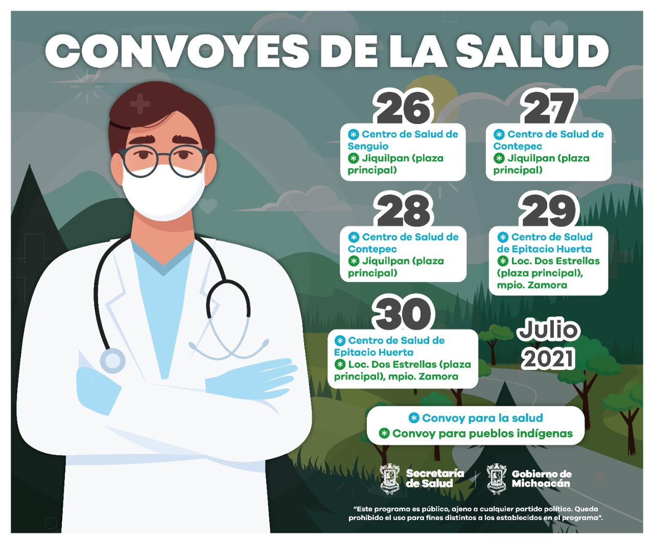 El Convoy de la Salud se instalará el día 26 en Senguio, 27 y 28 en Contepec y cerrará el 29 y 30 en Hepitacio Huerta.