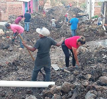 Jacona, Mich.- Ante la desatención y nula respuesta por parte del ayuntamiento de Jacona, vecinos adheridos al Movimiento Antorchista pertenecientes a la colonia “Antorcha”, decidieron organizarse y llevar a cabo la aportación económica para desarrollar la obra de introducción de drenaje por su cuenta, así lo dio a conocer Leticia Arroyo Vilches, líder antorchista en la región.