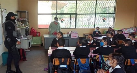 En dichas instalaciones los agentes se dieron cita ante un total de 80 alumnos de 6o y 5o grado, respectivamente, donde compartieron por medio de platicas información para orientar y capacitar sobre los protocolos de actuación y la Ley Nacional del Sistema Integral de Justicia Penal para Adolescentes.