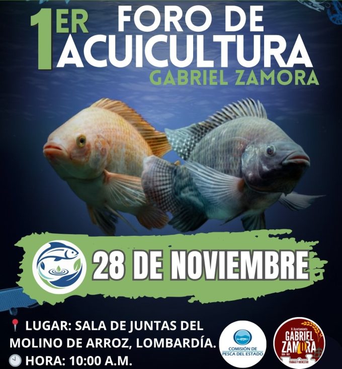Gabriel Zamora, Mich.- La Comisión de Pesca de Michoacán (Compesca), en coordinación con el Ayuntamiento de Gabriel Zamora, extiende una invitación a productoras y productores de la región Infiernillo al Primer Foro Acuícola, un espacio orientado a fortalecer las capacidades técnicas de quienes se dedican a esta actividad en la zona.