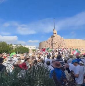 Al grito de » todos somos Manzo» los ciudadanos avanzan sobre avenida Reforma y otras calles y avenidas para concluir en el zócalo capitalino.