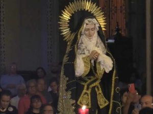 Noche de Viernes Santo, el día más importante del año litúrgico, y Nuestra Madre llora a su hijo Jesús, cuyo cuerpo maltratado y sin vida ha recibido en sus brazos al ser bajado de la Cruz, donde entregó su vida por nosotros.