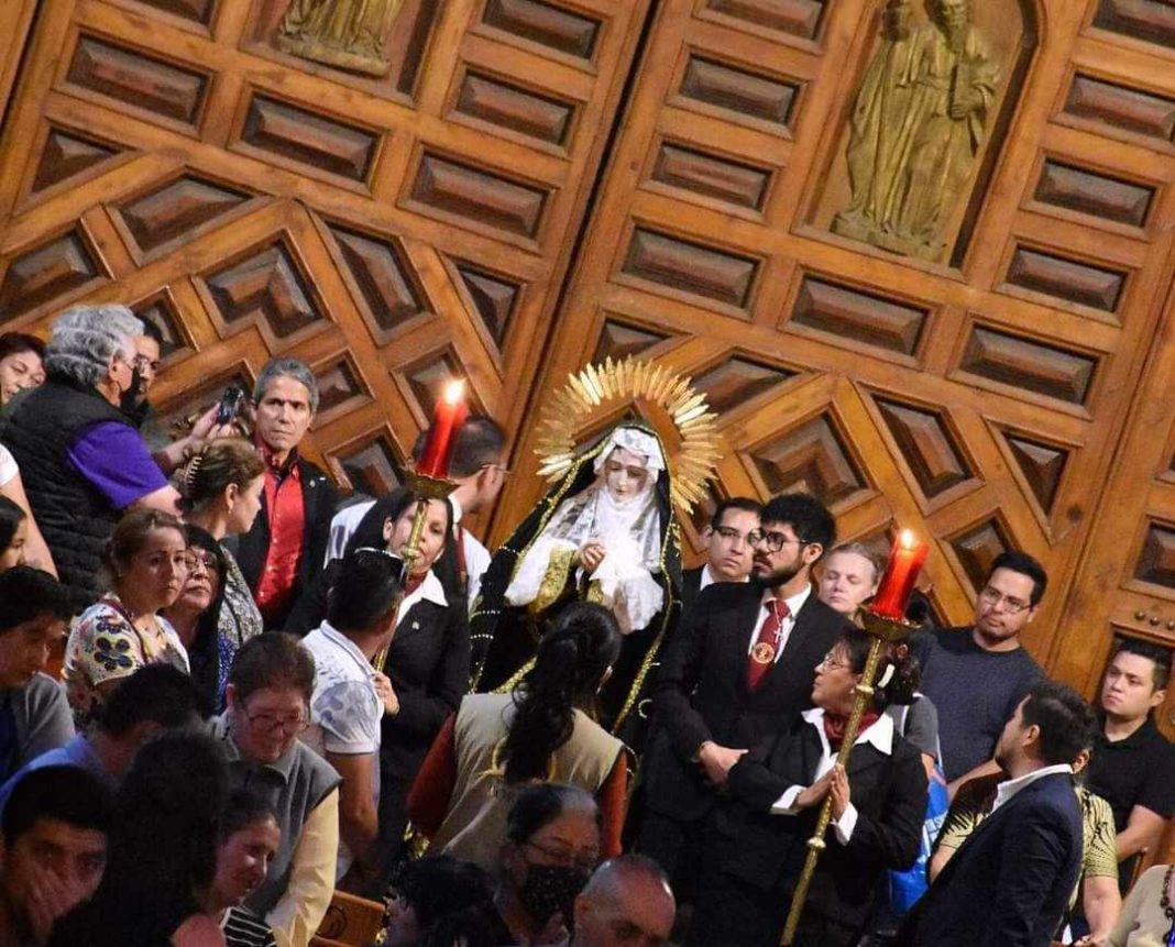 Por ello tuvo lugar el pésame a la Virgen dolorosa en este acto de piedad en que se le dan las condolencias a Ella. Así el acompañamiento a María que ha presenciado la muerte atroz de su Hijo. La efigie de la Virgen dolorosa pasó entre los asistentes a paso lento, con rostro afligido, ataviada en vestimenta negra, hacia el presbiterado de Catedral de Morelia rumbo al altar.