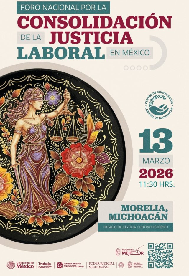 La capital michoacana será sede del Foro Nacional por la Consolidación de la Justicia Laboral en México, un espacio de análisis y diálogo que reunirá a especialistas, autoridades laborales, academia, organismos internacionales, estudiantes y público en general, para reflexionar sobre los avances y desafíos del nuevo sistema de justicia laboral en el país.
