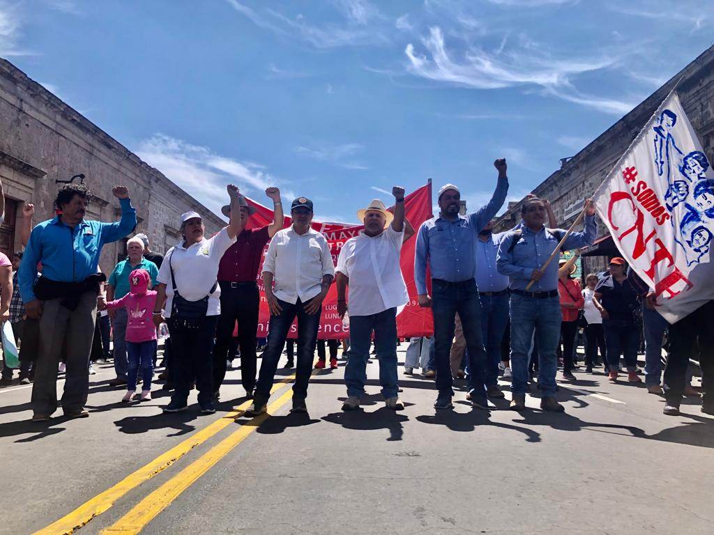 Tras el encuentro con los medios han partido ya unidos los contingentes del SUEUM, la CNTE separada que lidera Jairo Mandujano, y otros gremios más que se concentraron temprano en la Plaza Morelos y se han dirigido a Palacio de Gobierno con la consigna sindicato «sindicato callado jamás será escuchado».