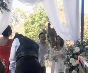 Ante una juez representante del Registro Civil presentaron a tiempo sus documentos legales las parejas, y quedaron formalmente casados en ceremonia ocurrida en el Jardín Cabus del recinto faunístico, tras firmar el acta de matrimonio en una mesa decorada con mantel blanco y pétalos de rosas de color rojo y rosa, y enmarcados por dos enormes ramos de flores blancas.