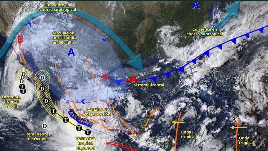 Detalló que se pronostican lluvias puntuales torrenciales en los estados de Michoacán y Guerrero, por lo que se exhorta a la población a mantenerse atenta a los avisos de las autoridades correspondientes.