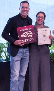 El momento central del evento fue la entrega oficial del certificado “Hecho en México”, documento que fue recibido por Dante Eludier y Aidé Vargas, quienes posteriormente participaron en una sesión fotográfica conmemorativa.