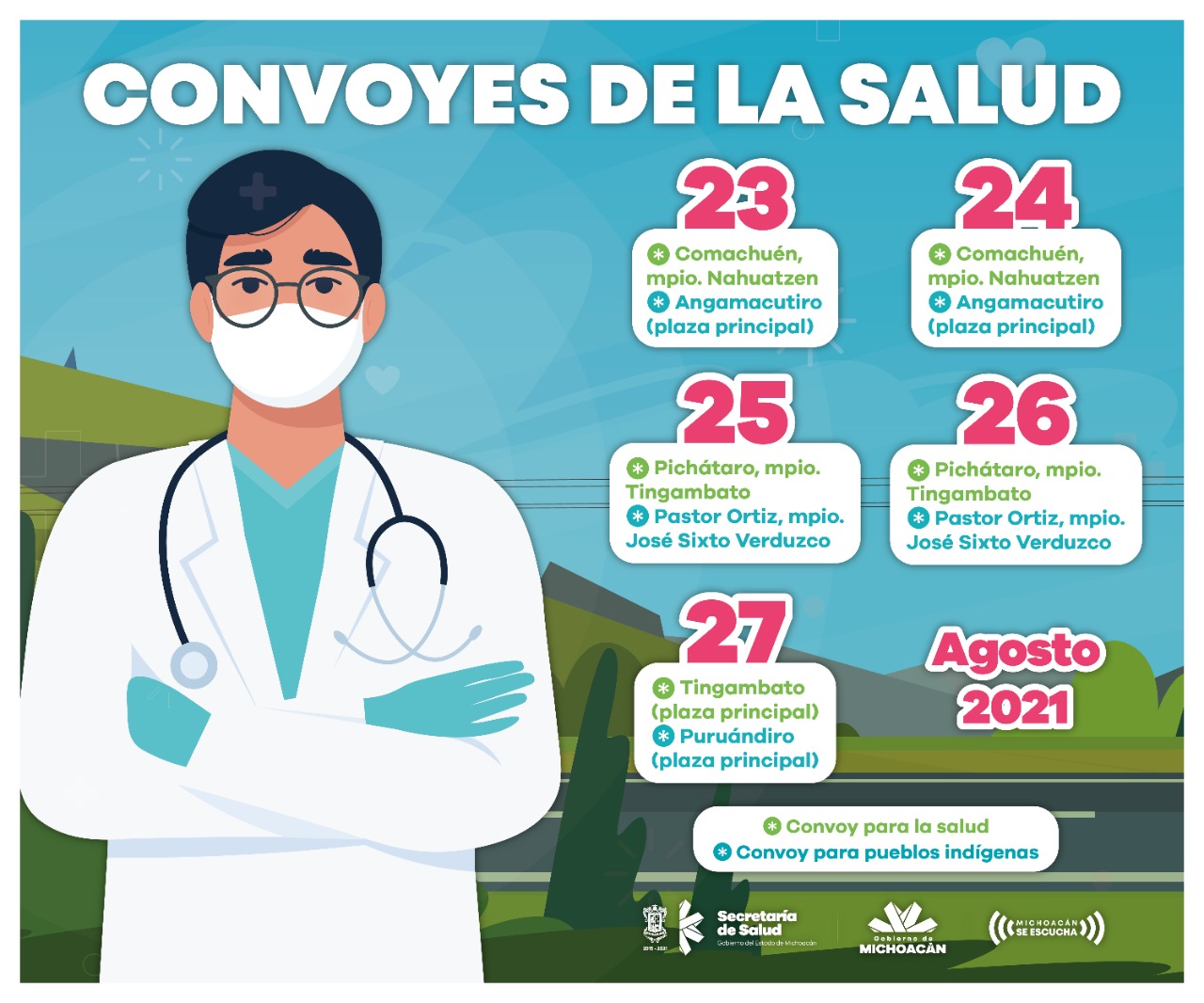 Morelia, Michoacán.- La Secretaría de Salud de Michoacán (SSM), informa a la población sobre los lugares en los que se encontrarán los Convoyes de Salud y para Pueblos Indígenas, del 23 al 27 de agosto.