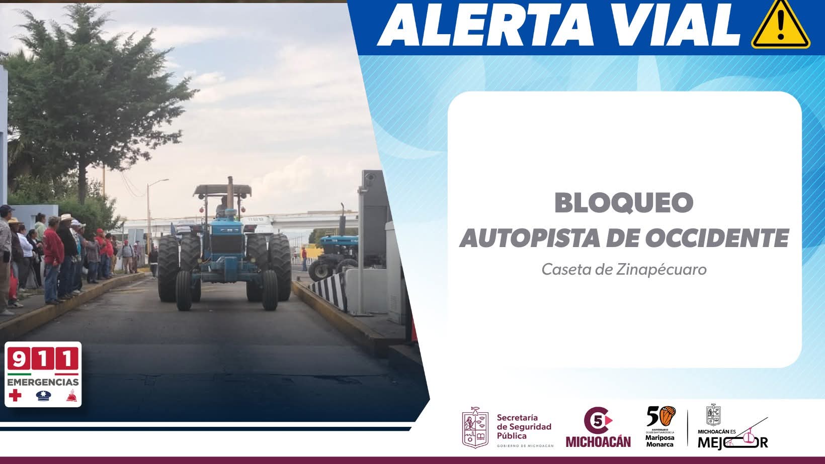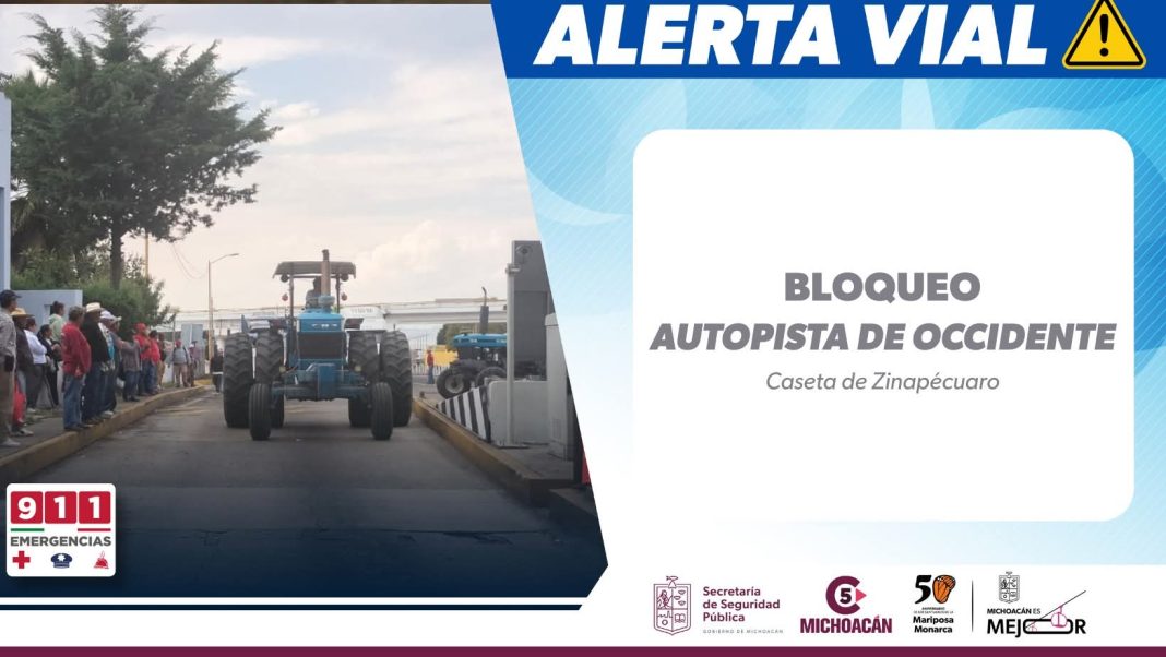 El reporte del C5 arroja que fue alrededor de las 14:43 horas de esta tarde en que se apersonaron los inconformes campesinos en el citado lugar, iniciando el bloqueo en ambos sentidos en donde han apostado sus vehículos y tractores impidiendo el paso vehicular en ambas vías, además de haber tomado la caseta de Zinapécuaro.