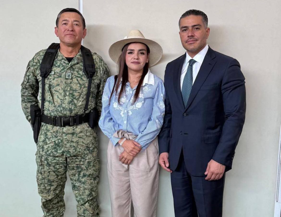 El secretario de Seguridad Pública federal Omar García Harfuch sostuvo una reunión con la presidenta Municipal de Uruapan Grecia Quiroz García con quién reviso las acciones de seguridad en el municipio.