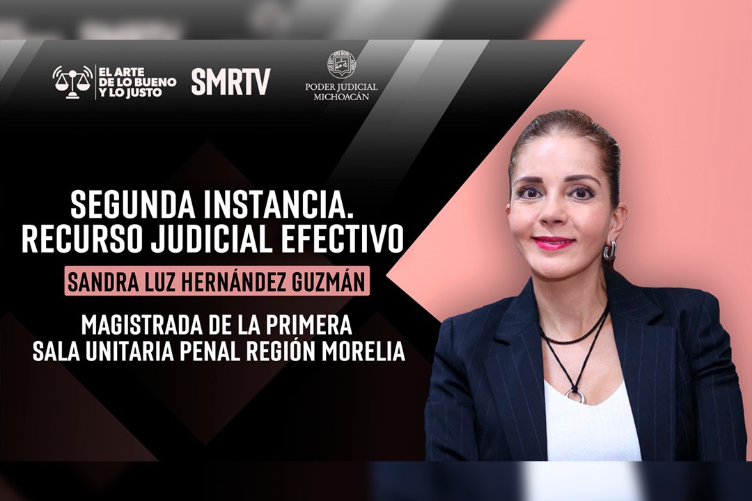 “La segunda instancia es fundamental porque brinda certeza jurídica a las partes inconformes con una resolución judicial. Quienes impartimos justicia conocemos el impacto que estas tienen en la vida de las personas; por ello la importancia de la revisión por un órgano superior”, así lo afirmó la magistrada de la Primera Sala Unitaria Penal Región Morelia, Sandra Luz Hernández Guzmán, en la nueva emisión de El Arte de lo Bueno y lo Justo.