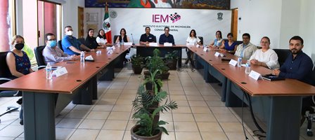 La firma de convenio general del apoyo y colaboración se realizó en la sala de sesiones del IEM, se contó con la presencia de las consejeras Araceli Gutiérrez Cortés, Carol Bereice Arellano Rangel, Marlene Arisbe Mendoza Díaz de León, Viridiana Villaseñor Aguirre, los consejeros Juan Adolfo Montiel Hernández, Luis Ignacio Peña Godínez, así como, la Licda. María de Lourdes Becerra Pérez, Secretaría Ejecutiva del IEM, la Contadora Norma Gaspar Flores, Directora de Administración, la Licda. Erandi Reyes Pérez Casado, Directora de Educación Cívica y Participación Ciudadana, los licenciados Juan Pedro Gómez Arreola y Juan José Moreno Cisneros, directores de Organización Electoral y Vinculación y Servicio Profesional Electoral respectivamente.