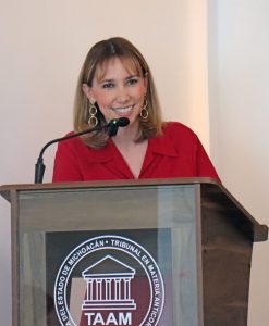 Acompañada por el Pleno, la magistrada presidenta destacó que el TAAM cuenta con un “con un grupo de defensoras y defensores debidamente capacitados, preparados y especializados que brindan servicios a la ciudadanía que demanda actos de autoridad”.