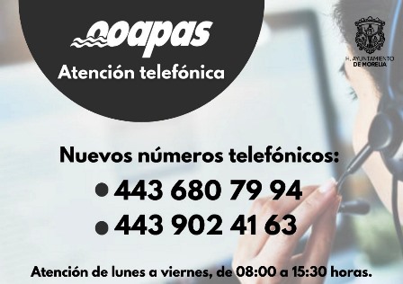 El Organismo Operador de Agua Potable, Alcantarillado y Saneamiento (OOAPAS) informa que a partir de hoy quedan activos dos nuevos números telefónicos, para que los usuarios puedan llamar y hacer sus reportes.