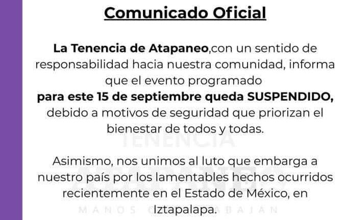 Martínez Alcázar explicó que, tras conocerse la decisión de cancelar el evento, de inmediato se estableció comunicación con la jefa de tenencia y finalmente la celebración se llevó a cabo “sin ningún contratiempo ni situación de riesgo”.