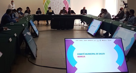 En sesión del Comité Municipal de Salud, encabezado por el alcalde Alfonso Martínez Alcázar y el jefe de la Jurisdicción Sanitaria de Morelia, Roberto Carlos Quevedo Díaz, así como instancias municipales, estatales y líderes de los diferentes sectores.