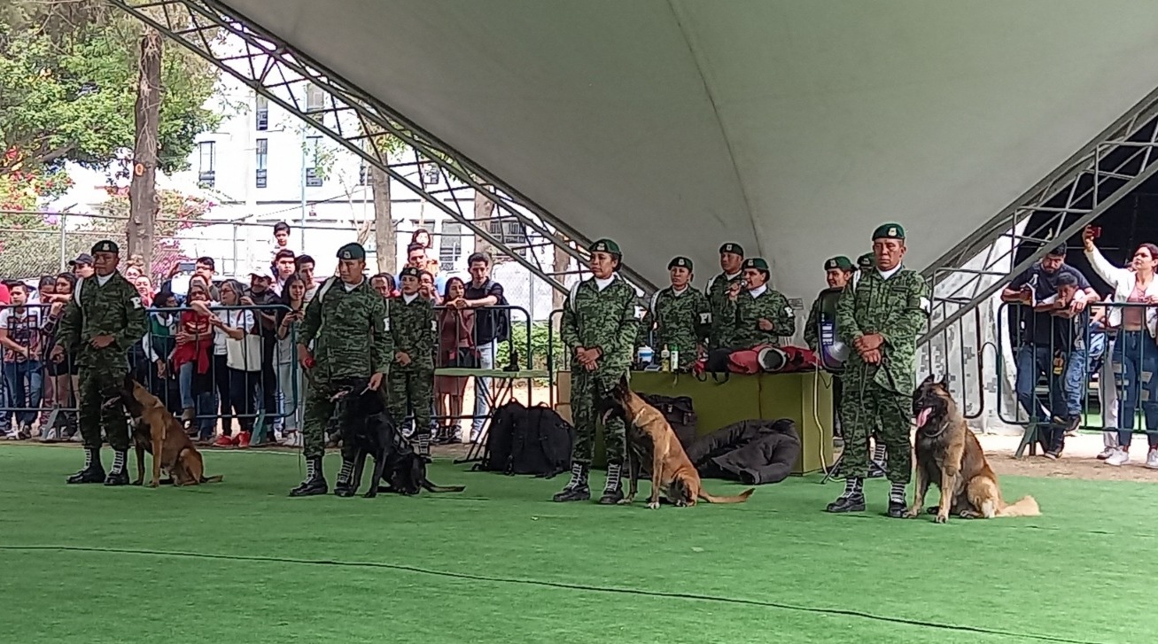 Asimismo, señaló que dentro de la Exposición «La Gran Fuerza de México», cuentan con 6 canes que lo que hacen es mostrar y exhibir lo que realizan dentro del Ejército Mexicano, puntualizó que