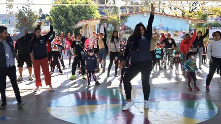 Con una clase de zumba, impartida por Andrea Cuevas Villaseñor, instructora calificada, iniciaron las actividades durante las cuales, los padres de familia bailaron con sus pequeños a ritmo diferentes estilos de música que les quitó el frio.