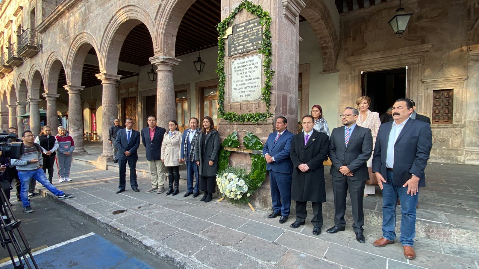 Autoridades montan una ofrenda floral y guardia de honor en el portal que lleva su nombre en Morelia