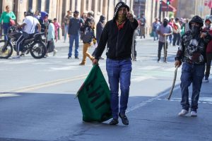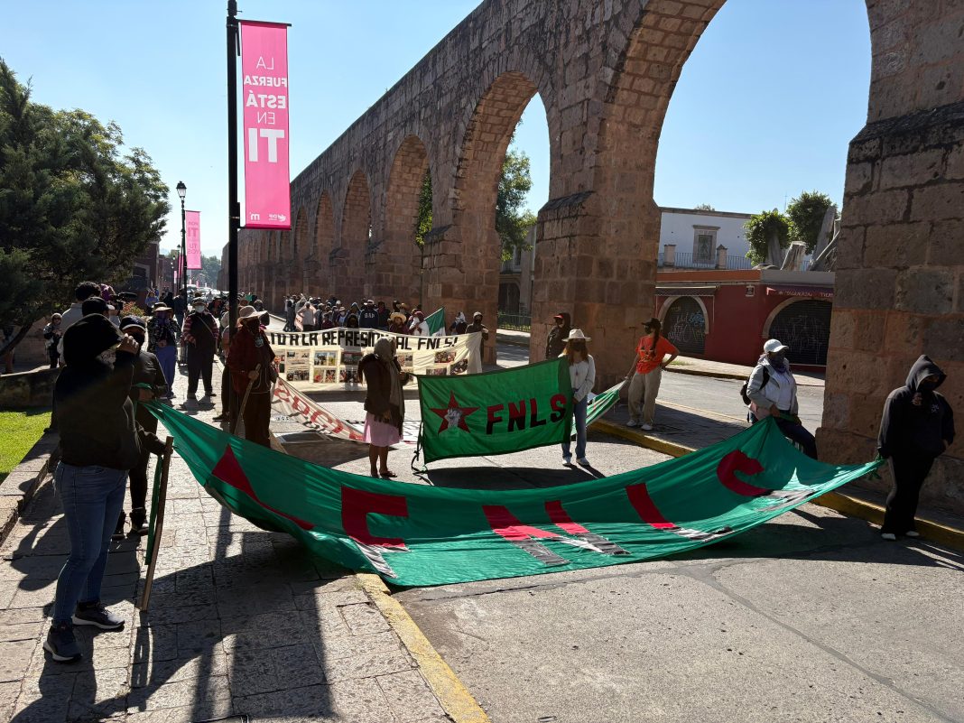 Integrantes del Frente Nacional de Lucha por el Socialismo (FNLS) se manifiestan de nueva en el centro de Morelia.