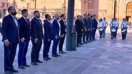 Fue en la plaza Melchor Ocampo que se llevó a cabo el izamiento de la bandera nacional, donde se tuvo la inasistencia de funcionarios de primer nivel de los distintos poderes.