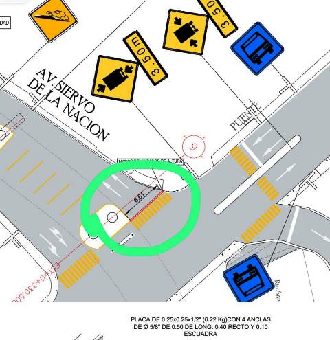 Ubicación del marco delimitador de galibo: Cruce de Av. Periodismo con Siervo de la Nación.