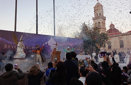 La plaza Jardín Morelos fue la sede de la misa de Reyes Magos que encabezó el arzobispo Carlos Garfias Merlos, quién invitó a los niños a buscar nuevos caminos para la paz, esto, para que llegue a todos los hombres y se logre la buena voluntad.