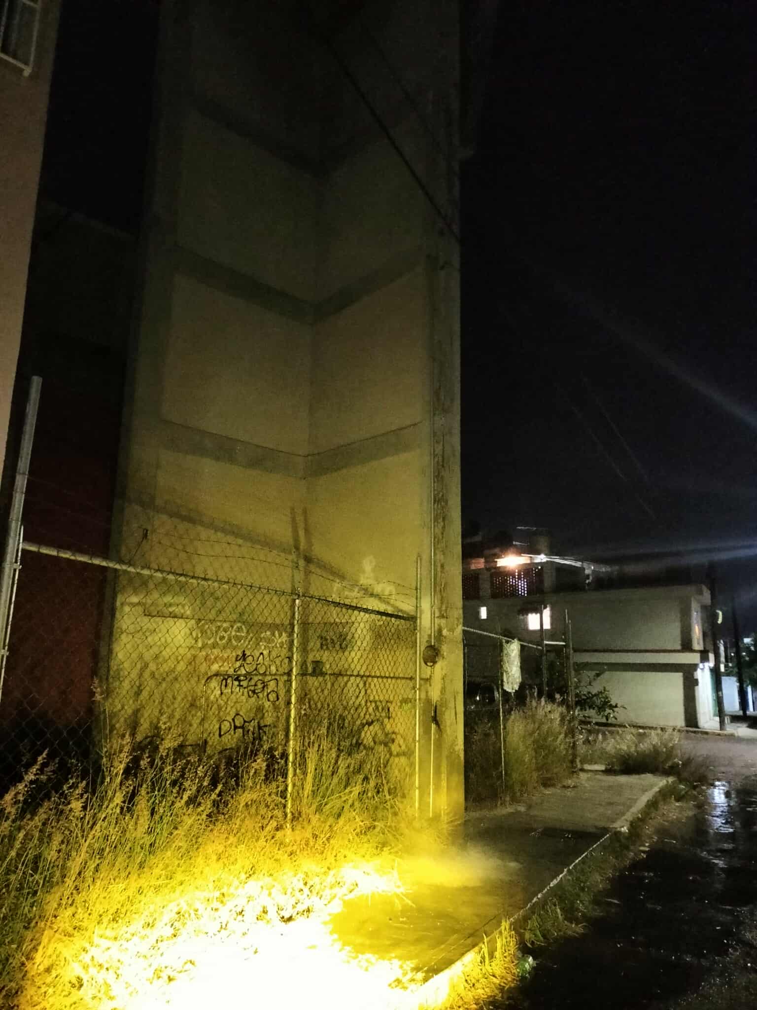 La noche de este martes se registra una considerable fuga de agua en un tanque elevado de concreto, ubicado en la calle José María Aguayo, en la colonia Sitio de Cuautla, cerca de la calzada La Huerta, en la salida a Pátzcuaro.