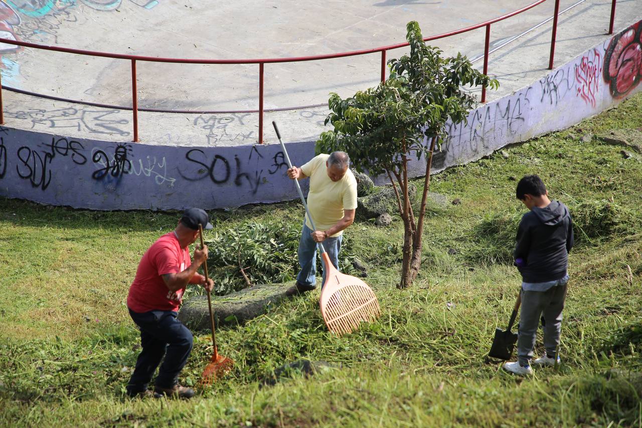Como parte de las actividades sabatinas a un año de devolver el brillo en las colonias, se realizó limpieza, poda de árboles, rehabilitación de luminarias, balizamiento de guarniciones, pintado de bancas, de juegos así como de la cancha de basquetbol en el Campo Deportivo de dicha colonia.