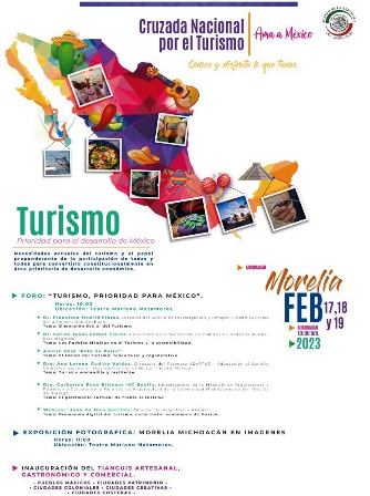 El próximo 17, 18 y 19 de febrero, Morelia será sede de la Cruzada Nacional por el Turismo, Ama a México, evento que reunirá a expositores de todo el país para establecer alianzas entre autoridades, instituciones e iniciativa privada, en aras de atender las necesidades de esta rama económica que grandes beneficios ha traído a la capital.