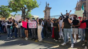 Durante la marcha comenzaron las consignas, en contra principalmente del gobierno federal y estatal, señalando un abandono para el alcalde asesinado. Al grito de “el que no brinque es Claudia, el que no brinque es Claudia” y “fuera, fuera”, los minutos transcurrieron hasta llegar al centro de la capital michoacana.