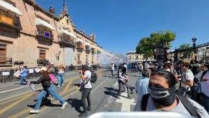 Por algunos momentos, la situación obligó a que se dispersaran los inconformes, quienes se reagruparon, unos en las cercanías del Congreso del Estado y del otro lado en la Plaza de Armas.