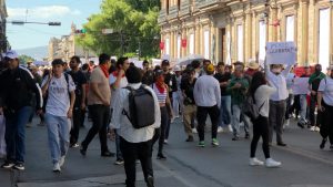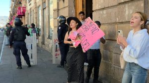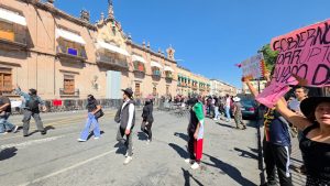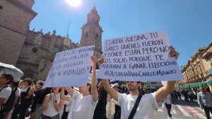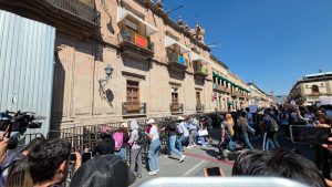Durante la marcha comenzaron las consignas, en contra principalmente del gobierno federal y estatal, señalando un abandono para el alcalde asesinado. Al grito de “el que no brinque es Claudia, el que no brinque es Claudia” y “fuera, fuera”, los minutos transcurrieron hasta llegar al centro de la capital michoacana.