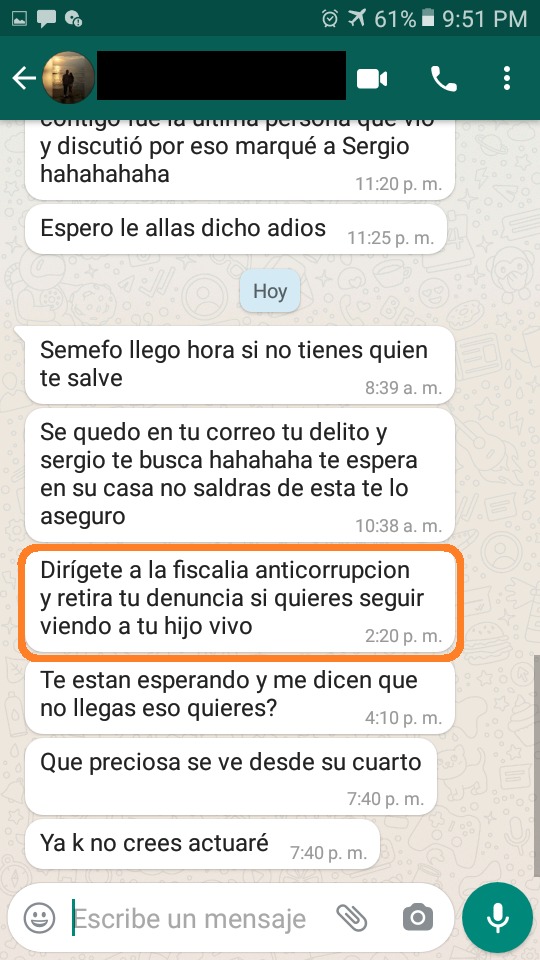 La amenaza contra Alberto y su pareja es que “se los va a llevar la chingada”. Amenazados y hostigados, Alberto y su novia han presentado, con varios obstáculos, diversas denuncias penales en contra de las autoras intelectuales y sus cómplices, entre ellos los servidores públicos involucrados, a quienes se hace responsables de lo que pudiera suceder a Alberto, su pareja y a este reportero.