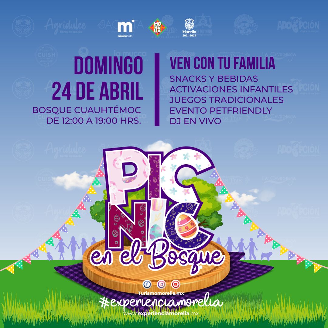 Morelia, Michoacán.- El Ayuntamiento de Morelia a través de la Secretaría de Turismo llevará a cabo un «Picnic» este próximo domingo 24 de abril en el que participarán cerca de 16 restaurantes y comercios gastronómicos para deleite y disfrute de las familias morelianas y turistas.