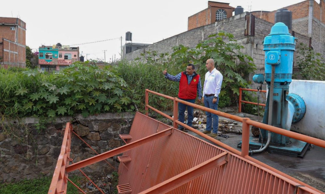 Durante la supervisión se informó que el Dren Barajas se encuentra al 50 por ciento de su capacidad, con operación de equipos en la zona de Itzicuaros, donde se mantienen compuertas cerradas y dos equipos en funcionamiento para el control de niveles.
