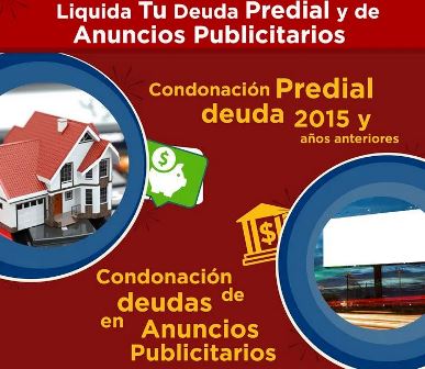 Hasta el 31 de agosto se estarán condonando parcialmente los adeudos de 2015 y anteriores