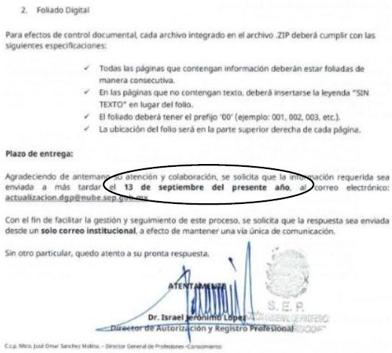 Paradójicamente, al final de cada oficio, después de la amenaza de bloqueo, aparece una frase recurrente donde prácticamente se les dice “tiene usted derecho de audiencia y podemos platicar”, porque ese es el mensaje del exhorto que dice: “se procederá a la suspensión del Módulo Electrónico de Titulación (MET) y se les informa que conforme a derecho resulte procedente, se les otorgará la audiencia correspondiente”, firmado por Israel Jerónimo López, director de Autorización y Registro Profesional. Para las universidades, esta frase ilustra el doble discurso institucional: primero se paralizan los trámites y después se ofrece un diálogo tardío, condicionado y carente de efectos reales.