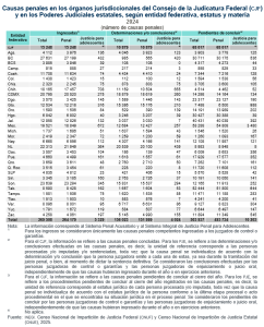 Del total de causas penales ingresadas a los órganos jurisdiccionales de los PJE, Baja California, Sonora y Nuevo León concentraron 10.9, 9.3 y 8.8 %, respectivamente. En cuanto a las determinaciones y/o conclusiones, Nuevo León, Ciudad de México y Sonora concentraron 14.2, 13.0 y 10.9 %, de forma respectiva.
