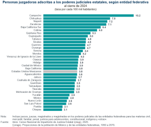 Al cierre de 2024, Campeche registró la tasa más alta de personas juzgadoras (10.2) por