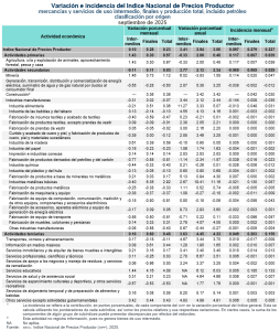 En septiembre de 2025, el INPP total, incluido petróleo, incrementó 0.23 % a tasa mensual y 3.06 % a tasa anual. En el mismo mes de 2024, creció 0.50 % a tasa mensual y 5.13 % a tasa anual.